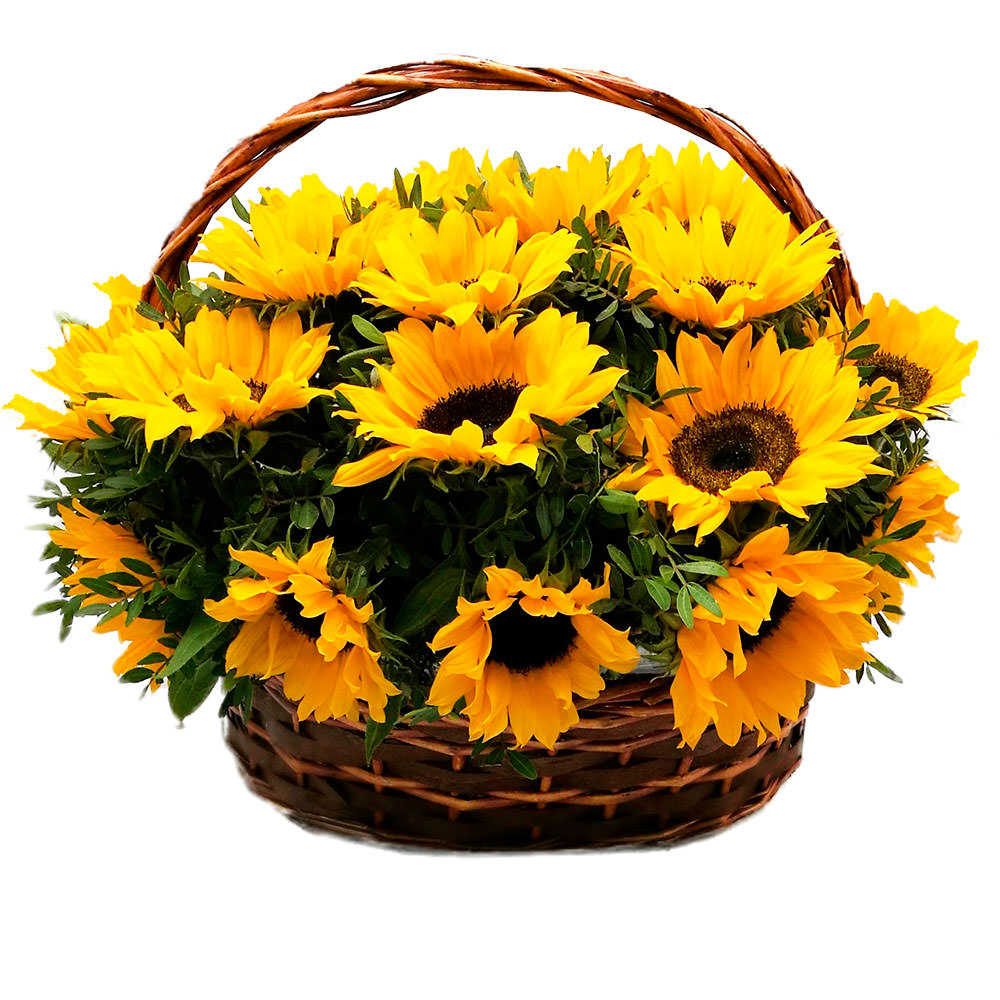 Подсолнух, фисташка. Упаковка (Корзина, оазис).