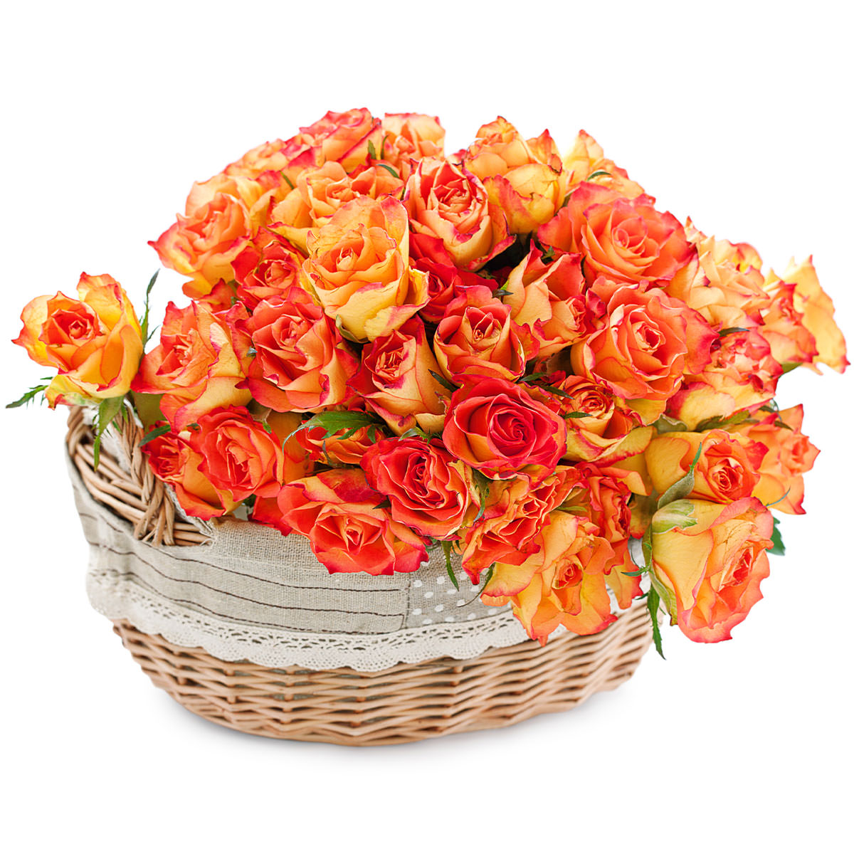 Роза одноголовая оранжевая. Упаковка (Корзина, оазис, ящик).