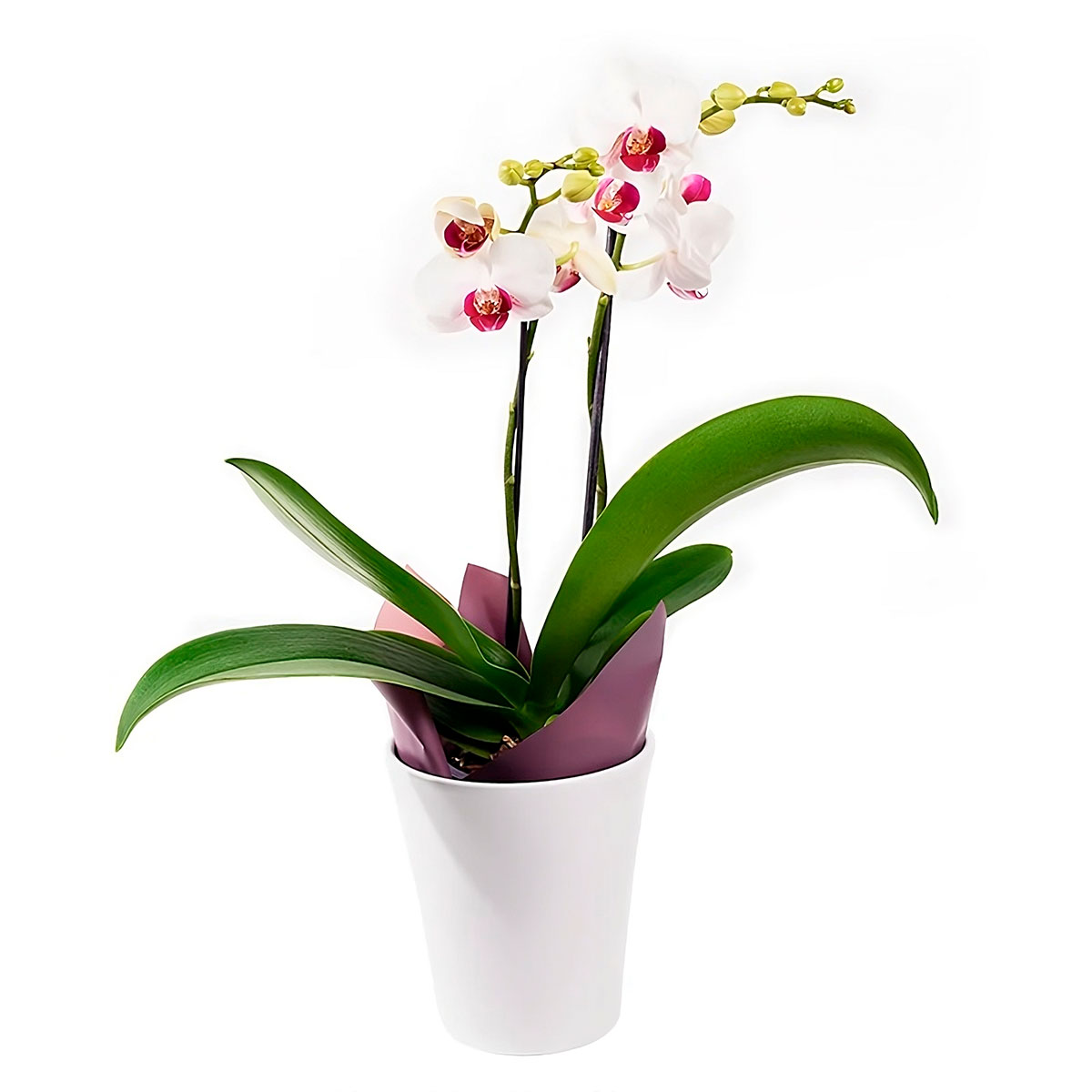 Орхидея в горшке «Двухстеблевая» ждет вашего заказа: чтобы заказать подарок, заполняйте заказ на сайте за одну минуту. Также можно выбрать для заказа в Черкесске по телефону +7(993)431-06-99 или по почте kate@loveflowers24.ru.