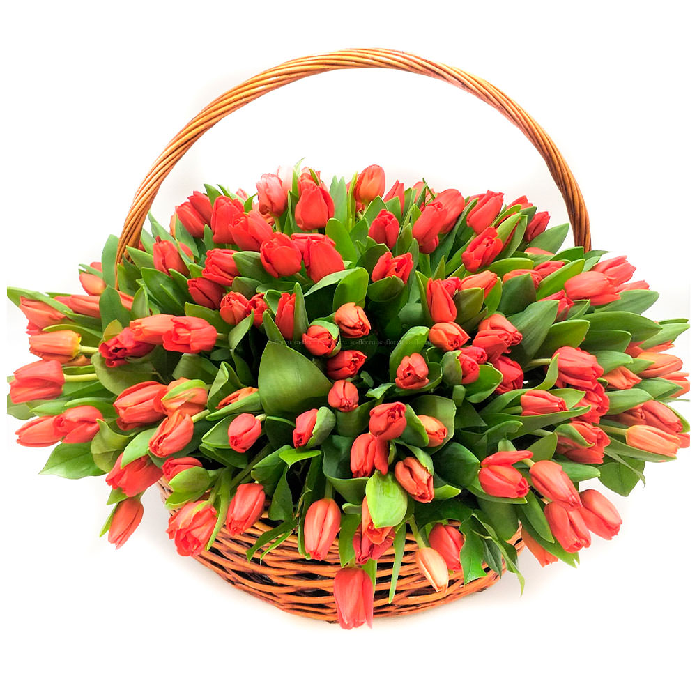 Цветы в корзинке «Красные тюльпаны» с доставкой по г Черкесск: вы можете заказать букет в цветочном супермаркете «Флормания» по цене от 3690 руб.